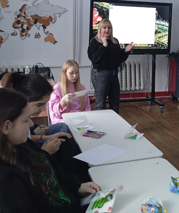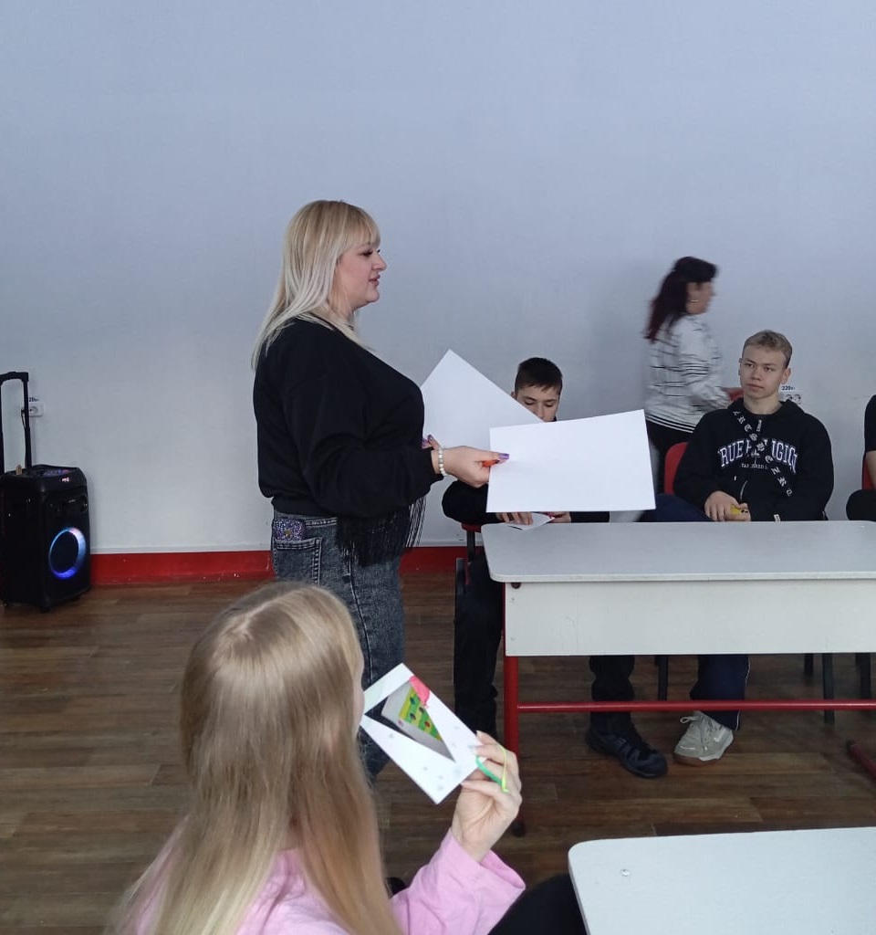 Педагоги Новоструева Элеонора Владимировна, Пинчук Наталья Евгеньевна, Волобоева Ольга Владимировна и Ковцур Александра Сергеевна провели мастер-классы, на них ребята: рисовали новогоднюю поздравительную открытку, мастерили новогоднюю игрушку «Елочку» с символом наступающего года — змейкой, танцевали «Новогодний Флеш-моб» и играли в «Новогодний мяч», угадывали песни по эмодзи, исполнителей песен по фотографии, пели под минусовку и допевали по строчке песни.