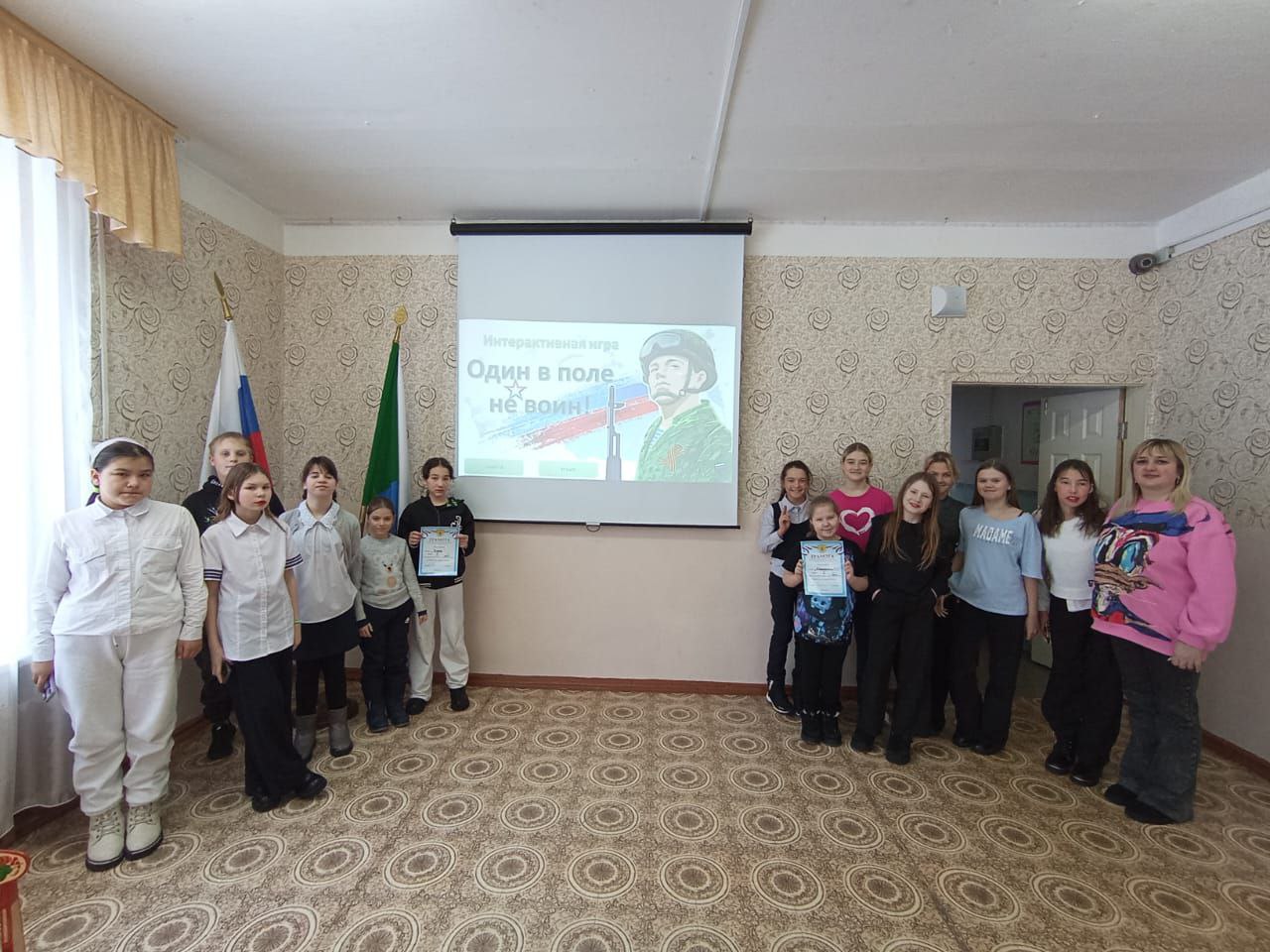 Мероприятие провела руководитель Ковцур Александра Сергеевна. Дети с удовольствием отгадывали ребусы, вспоминали пословицы, отвечали на вопросы военной тематики. В конце игры были подведены итоги и участники были награждены грамотами.