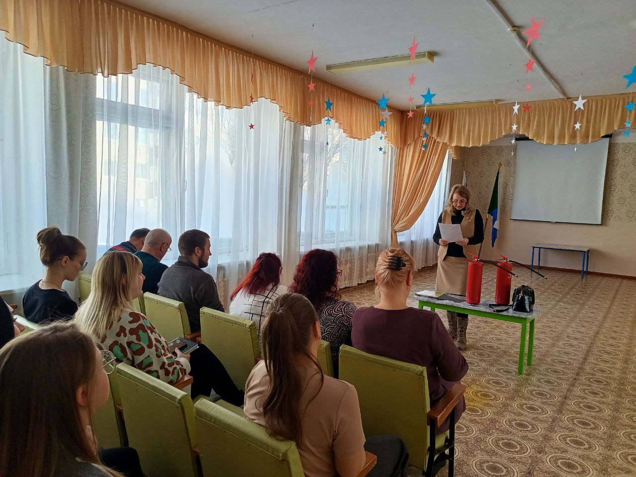 Начальник ГПП противопожарной службы Хабаровского края Гулевич Татьяна Ильинична провела беседу о пожарной безопасности и правилах пользования огнетушителями.