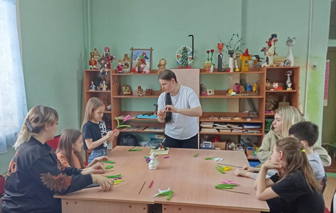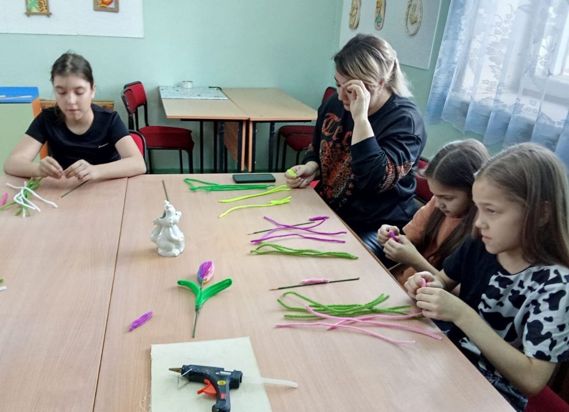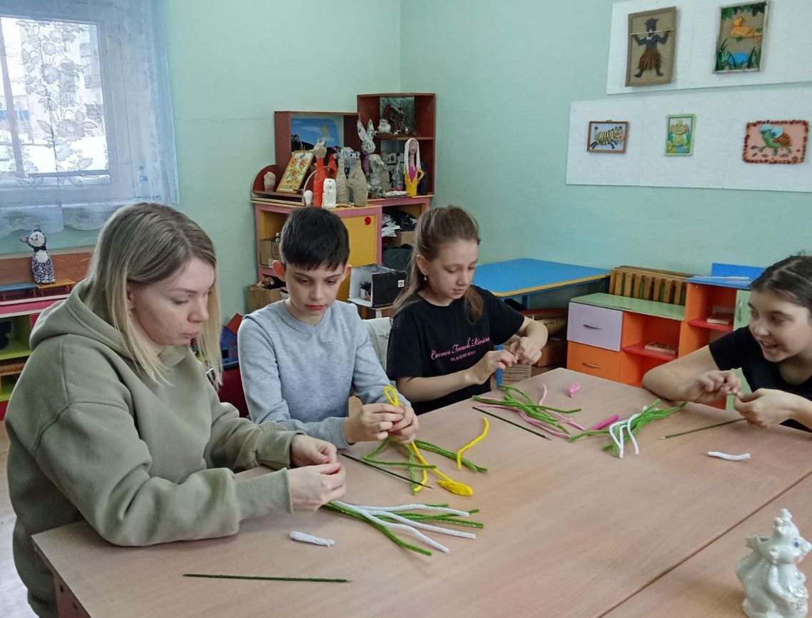 Наступила весна, а это значит, что природа вокруг нас совсем скоро заискрит пестрыми красками. Поэтому Надежда Владимировна, руководитель клуба, предложила ребятам вместе с родителями сделать самый весенний цветок — тюльпан из синельной проволоки. Синельная проволока — универсальный материал, из которого можно создавать оригинальные игрушки, украшения, цветы и предметы декора. Такая техника вызывает интерес у детей, открывает огромный простор для творчества и фантазии. Цветы, изготовленные из синельной проволоки, смотрелись особенно ярко. и получились нежными, совсем как настоящие.