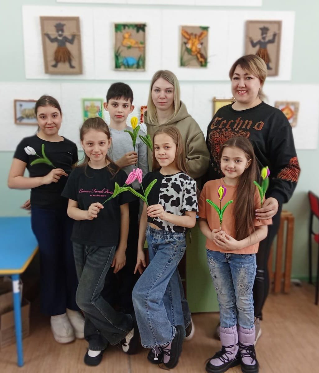 В образцовом коллективе любительского художественного творчества клубе «Подсолнух“ прошел совместно с родителями мастер-класс "Весенний цветок — тюльпан»