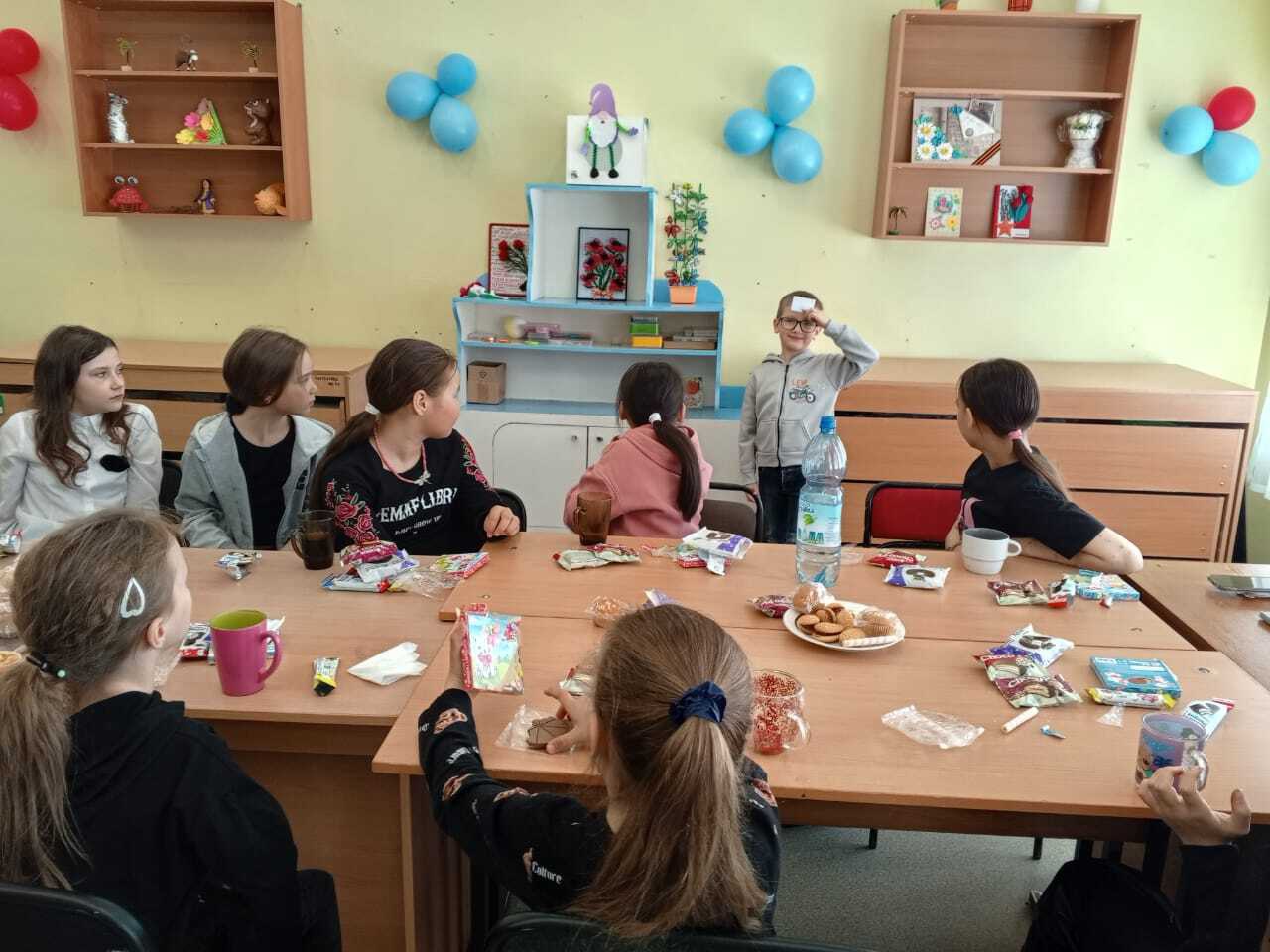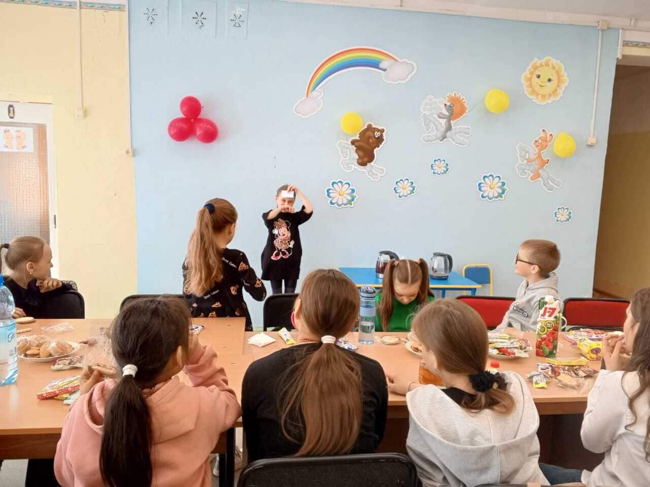 В творческом объединении «Калейдоскоп» (рук. И.В. Олейникова) прошло итоговое занятие. В этот день ребята поздравили именинницу Назарову Таисию и подарили ей открытки, сделанные своими руками. Сами накрыли стол для чаепития. А также заранее подготовили игры «Угадай, кто я?». Больше всего ребятам понравилась игра «Фанты», где нужно было выполнять разные задания: нужно было без рук нарисовать слона, станцевать танец «Маленьких утят», пройтись с книгой на голове и не уронить ее, сделать селфи с именинницей, мимикой и жестами показать сказочного персонажа. А в заключении, ребята посмотрели работы своих товарищей и обсуждали, чтобы они хотели сделать в следующем учебном году.