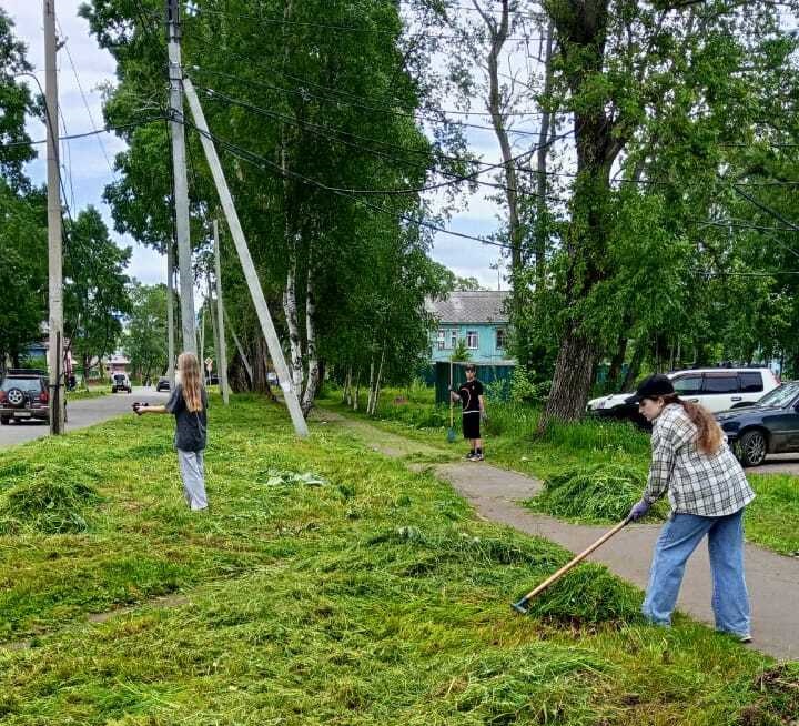 Пять подростков из творческих объединений центра, под руководством начальника биржи, Надежды Владимировны Каратаевой облагораживают наш город! Ребята убирают территорию города, собирают скошенную траву, поливают цветочные грядки. Все работы выполняются четко, аккуратно и ответственно!