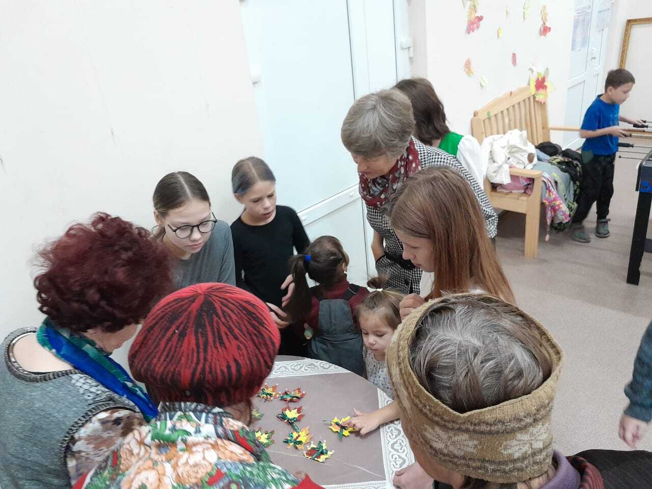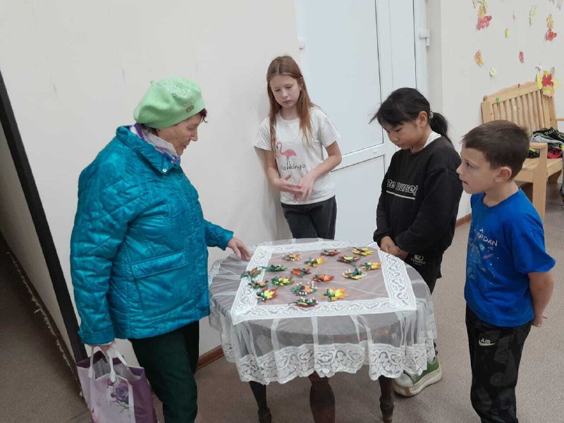 Ребята из образцового коллектива «Рукодельница « сделали броши в форме листочка и подарили их людям золотого возраста, которые пришли на концерт „Ваших лет золотые россыпи», посвященный Дню пожилого человека. Все гости праздника получили заряд бодрости и хорошего настроения.